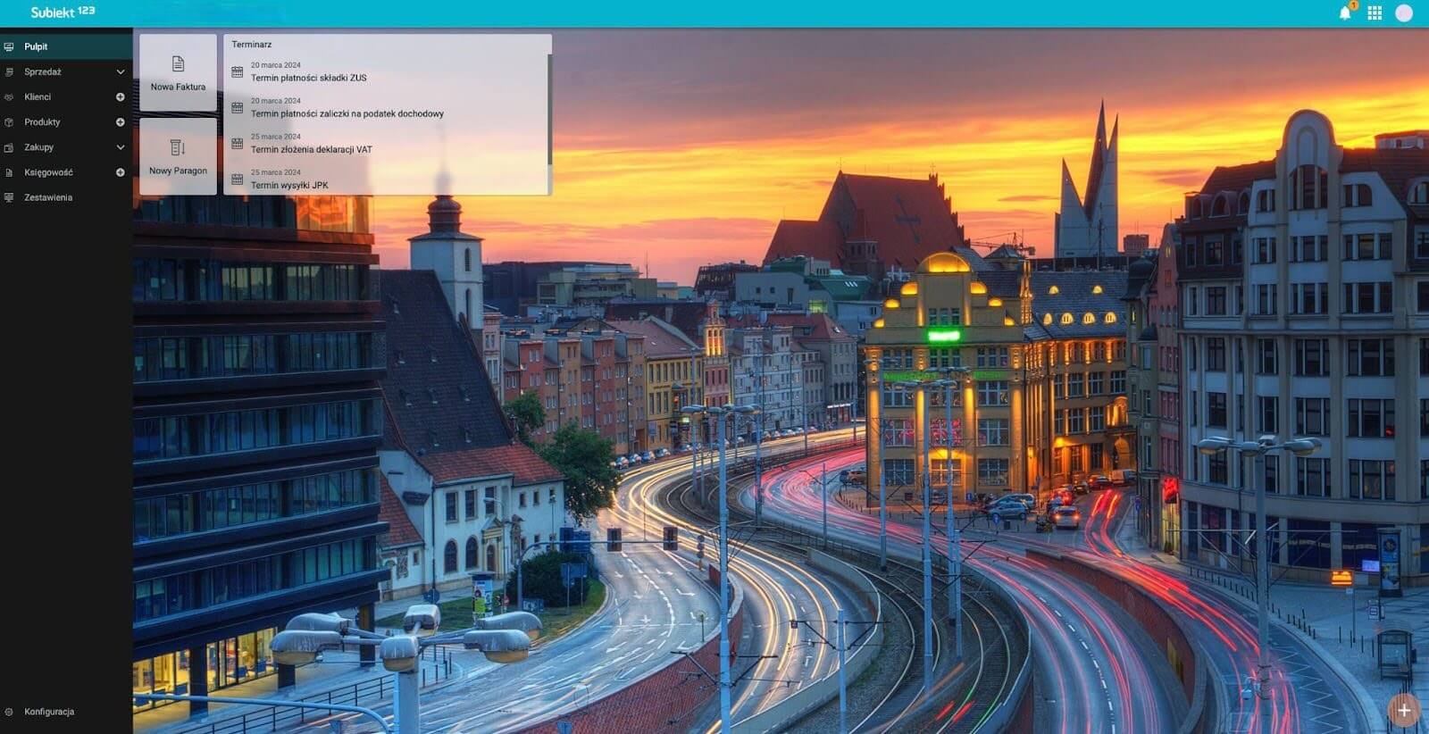 Pulpit jest w pełni interaktywny. Możesz dostosować go do swoich potrzeb dokładając kolejne kafle. W przedstawionej konfiguracji masz możliwość szybkiego wystawienia faktury,