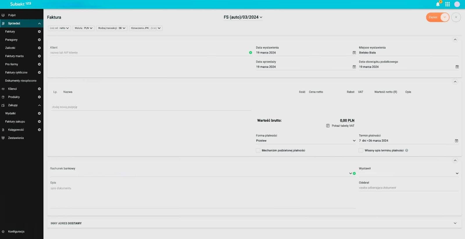 - Zapisz fakturę.